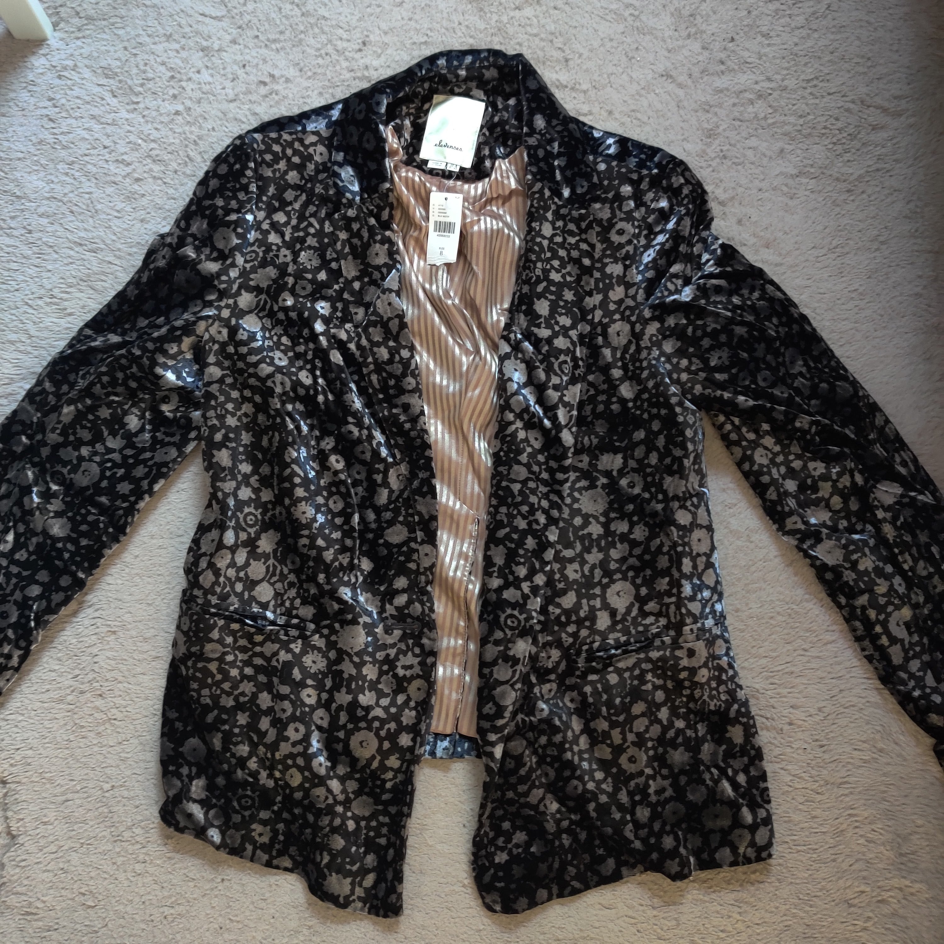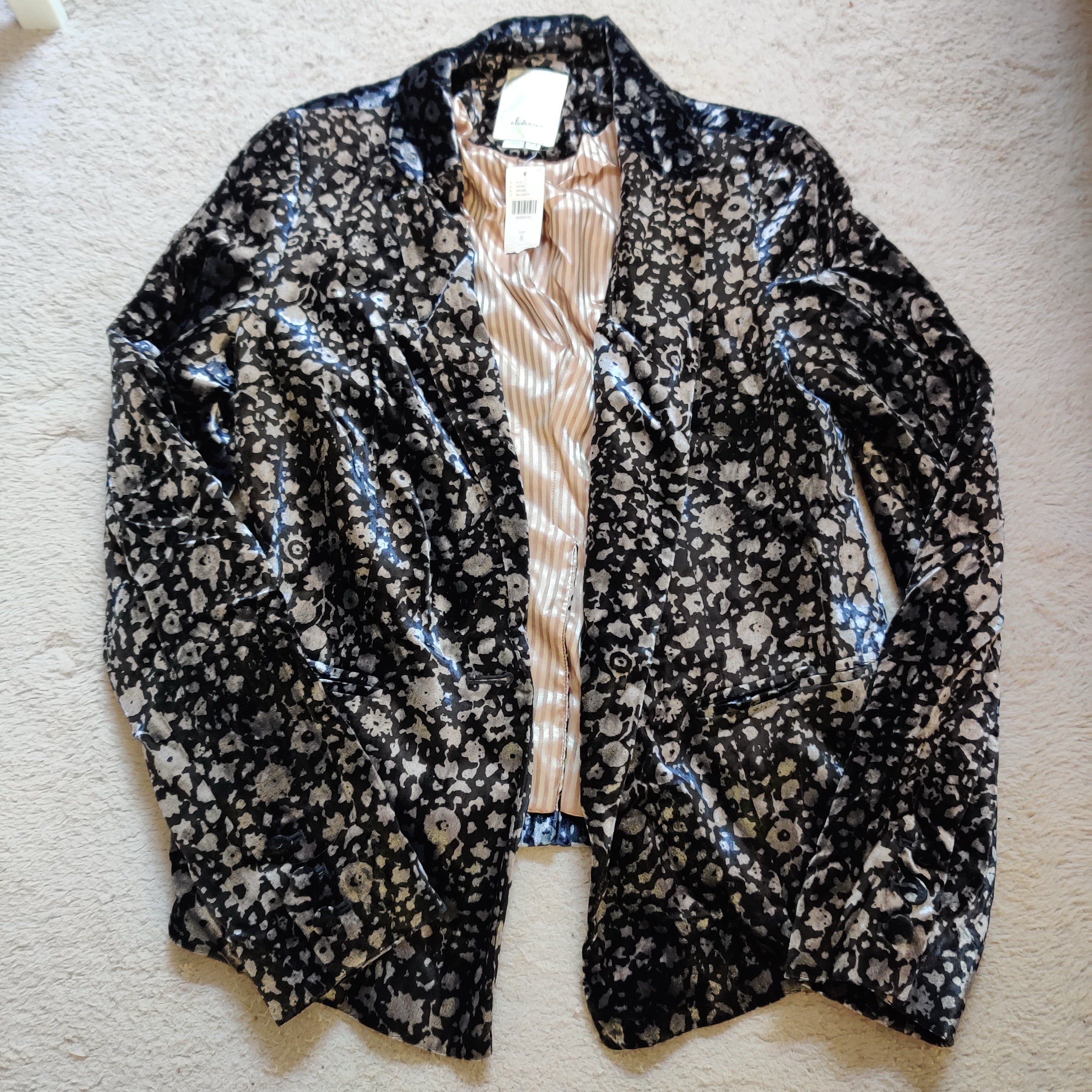 ANTHROPOLOGIE Elevenses Lumi Velvet Blazer Sz 8 Black Silver Gray Floral Jacket -