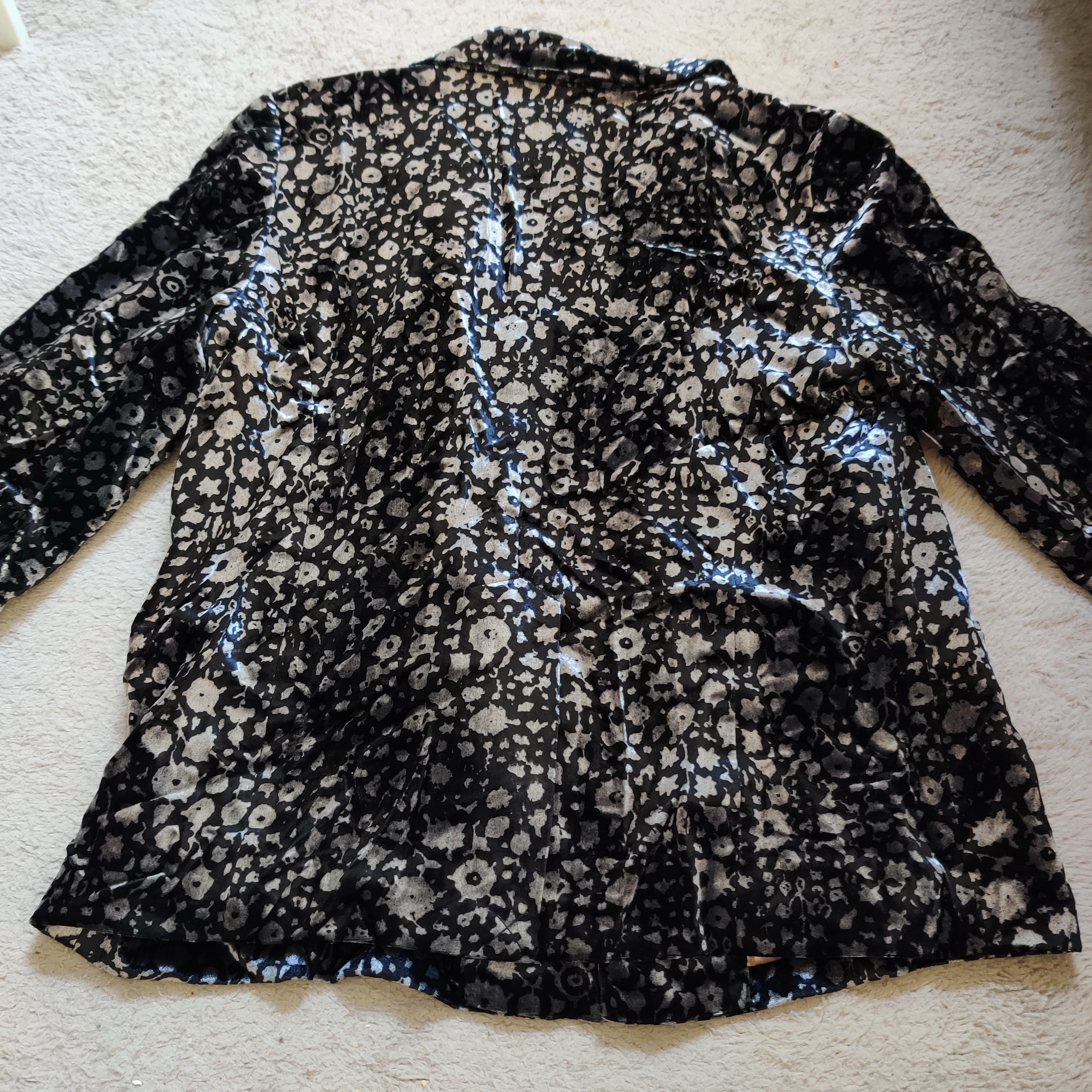 ANTHROPOLOGIE Elevenses Lumi Velvet Blazer Sz 8 Black Silver Gray Floral Jacket