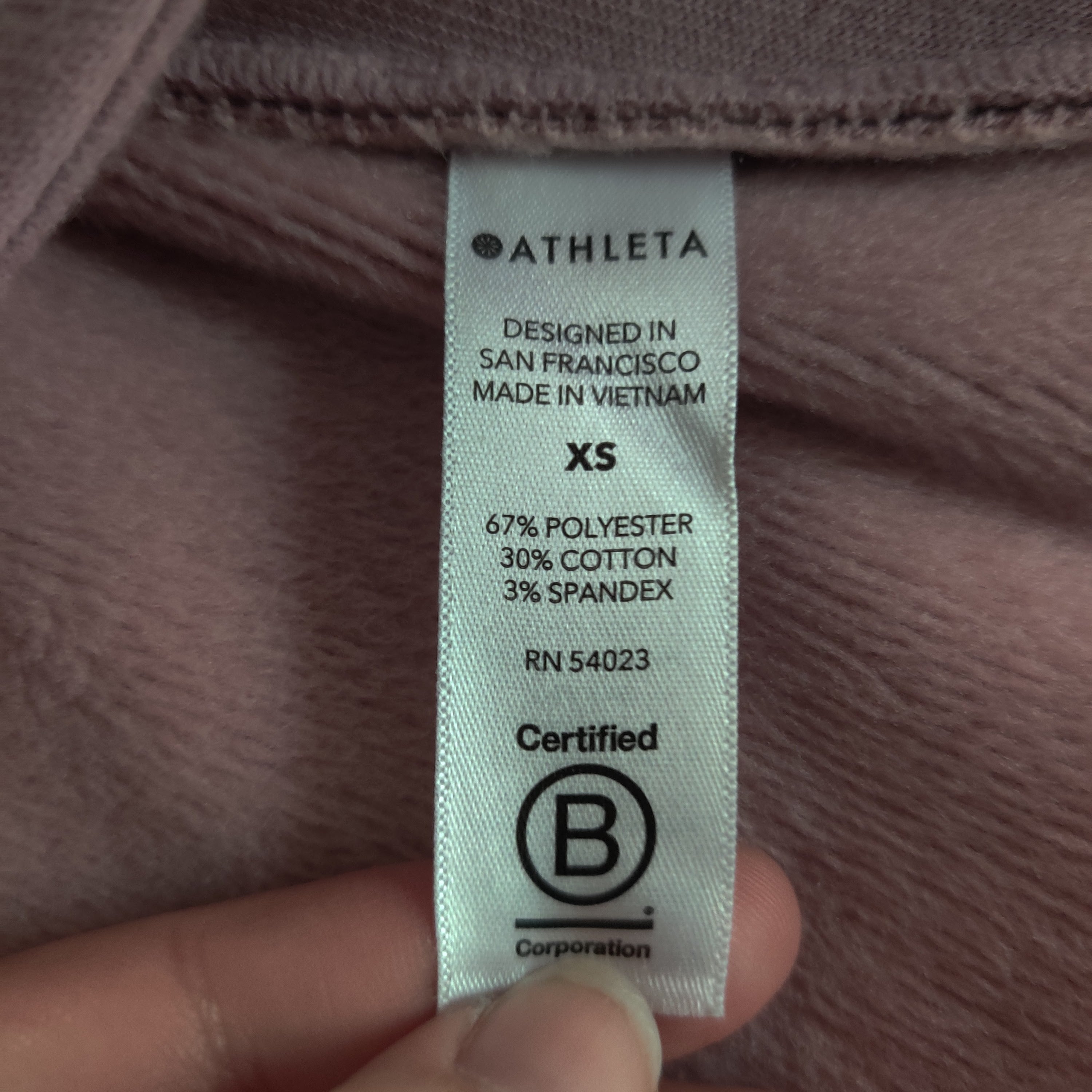 Athleta Cozy Karma Asymmetrical Pullover Sweatshirt Lavender Mauve Pockets Sz XS