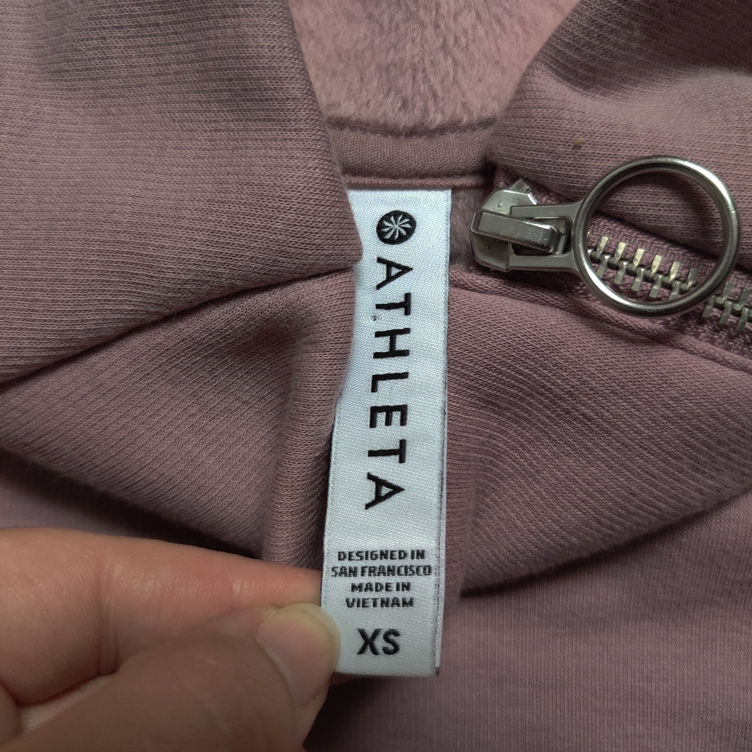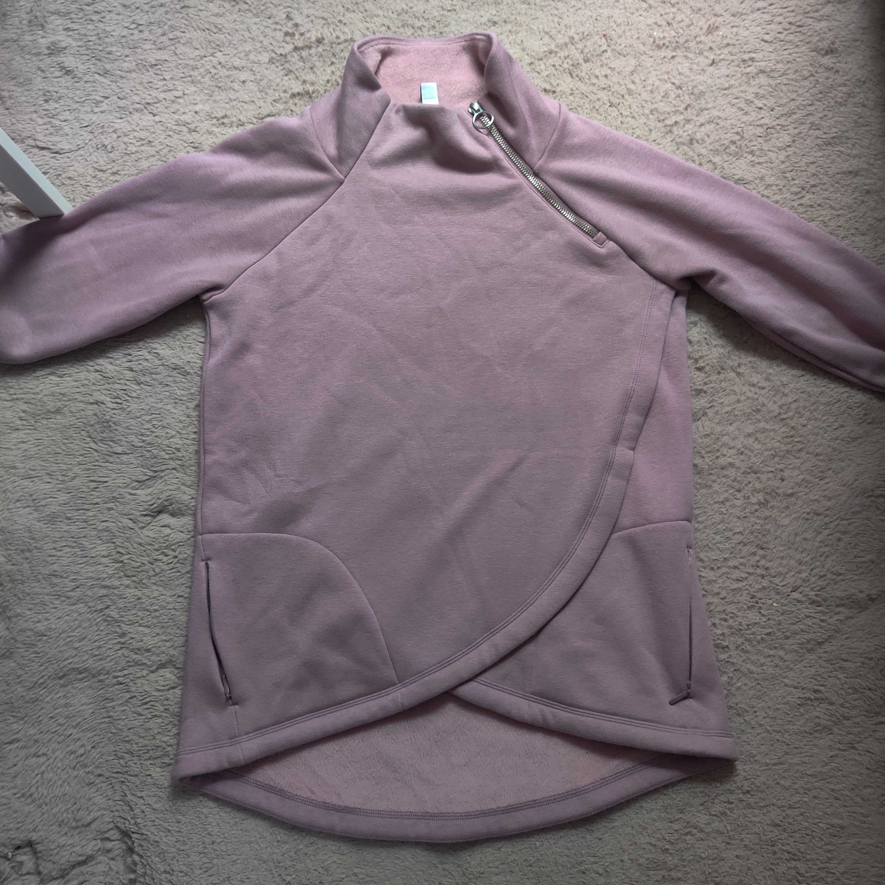Athleta Cozy Karma Asymmetrical Pullover Sweatshirt Lavender Mauve Pockets Sz XS - like new condition.