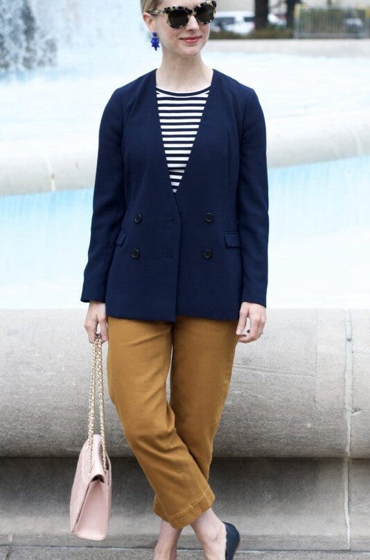 J. Crew 365 French Girl Blazer Womens Navy Collarless Double Breasted 8P H6285