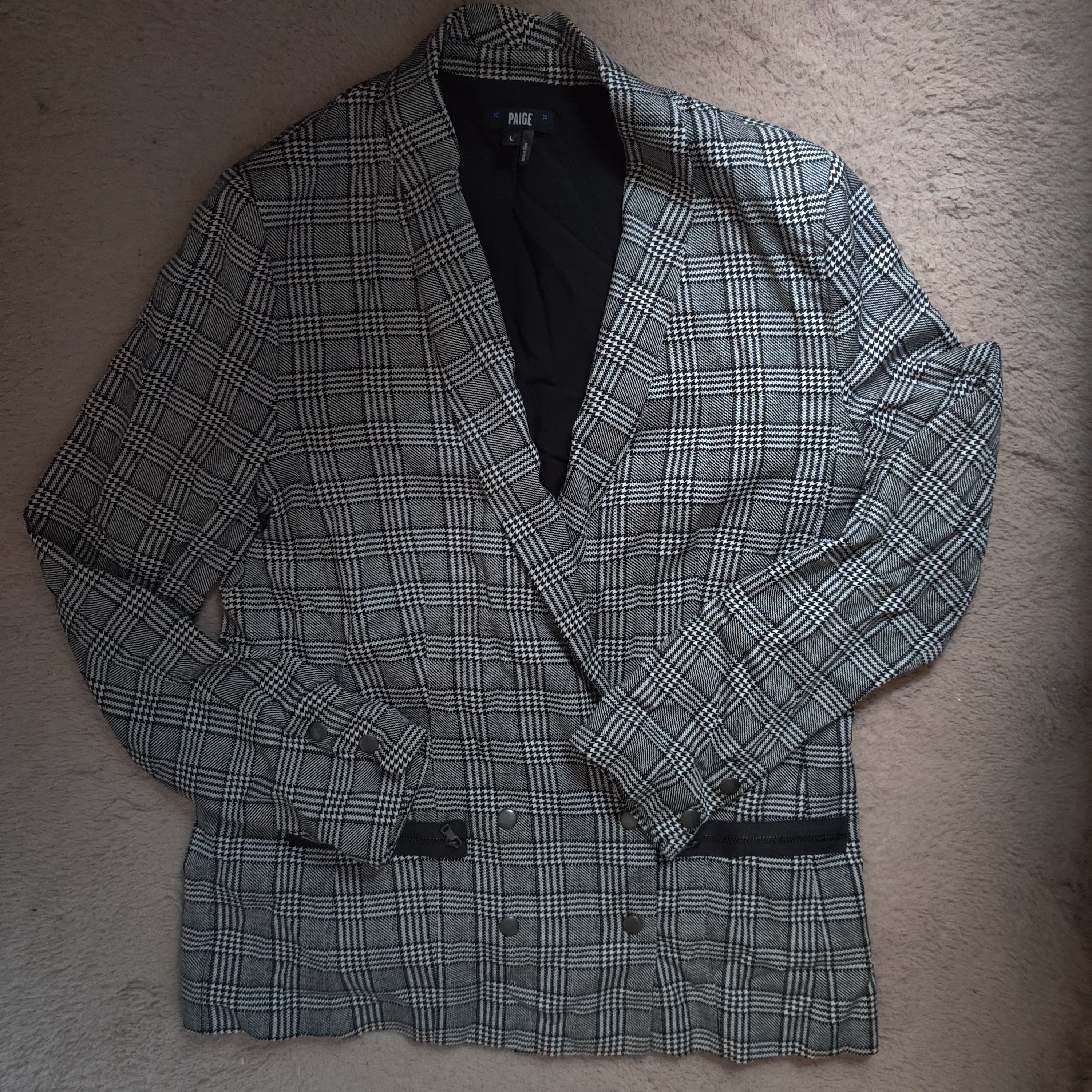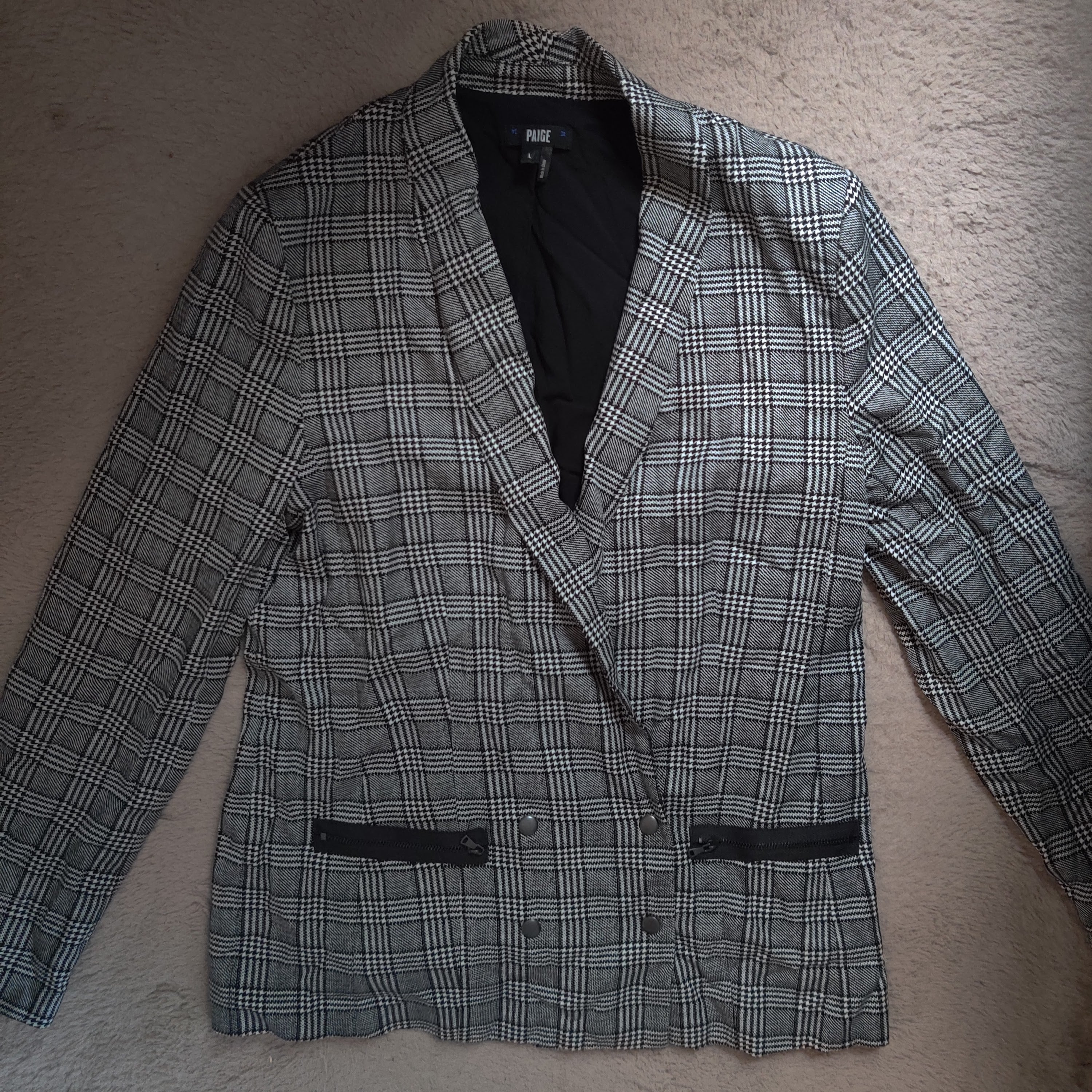 PAIGE Womens Karissa Houndstooth Plaid Blazer Black White Check Size Large Zip -