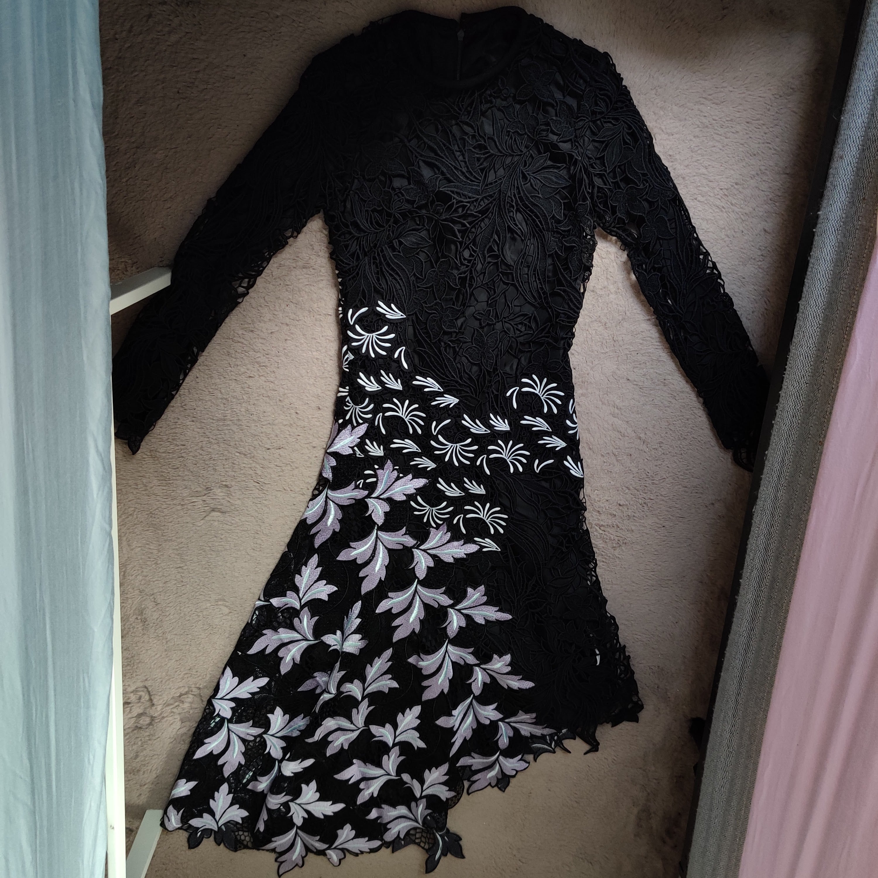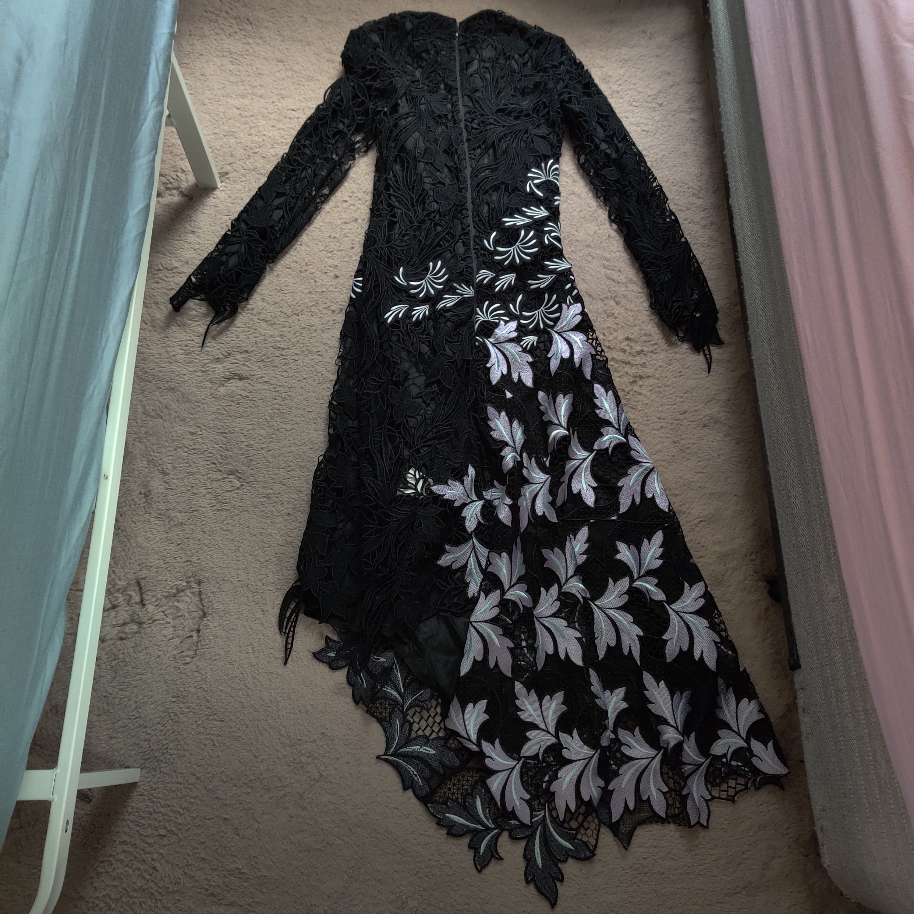 Self Portrait Vine Lace Midi Dress Size 0 Asymmetric Hem Floral Black ALTERED -