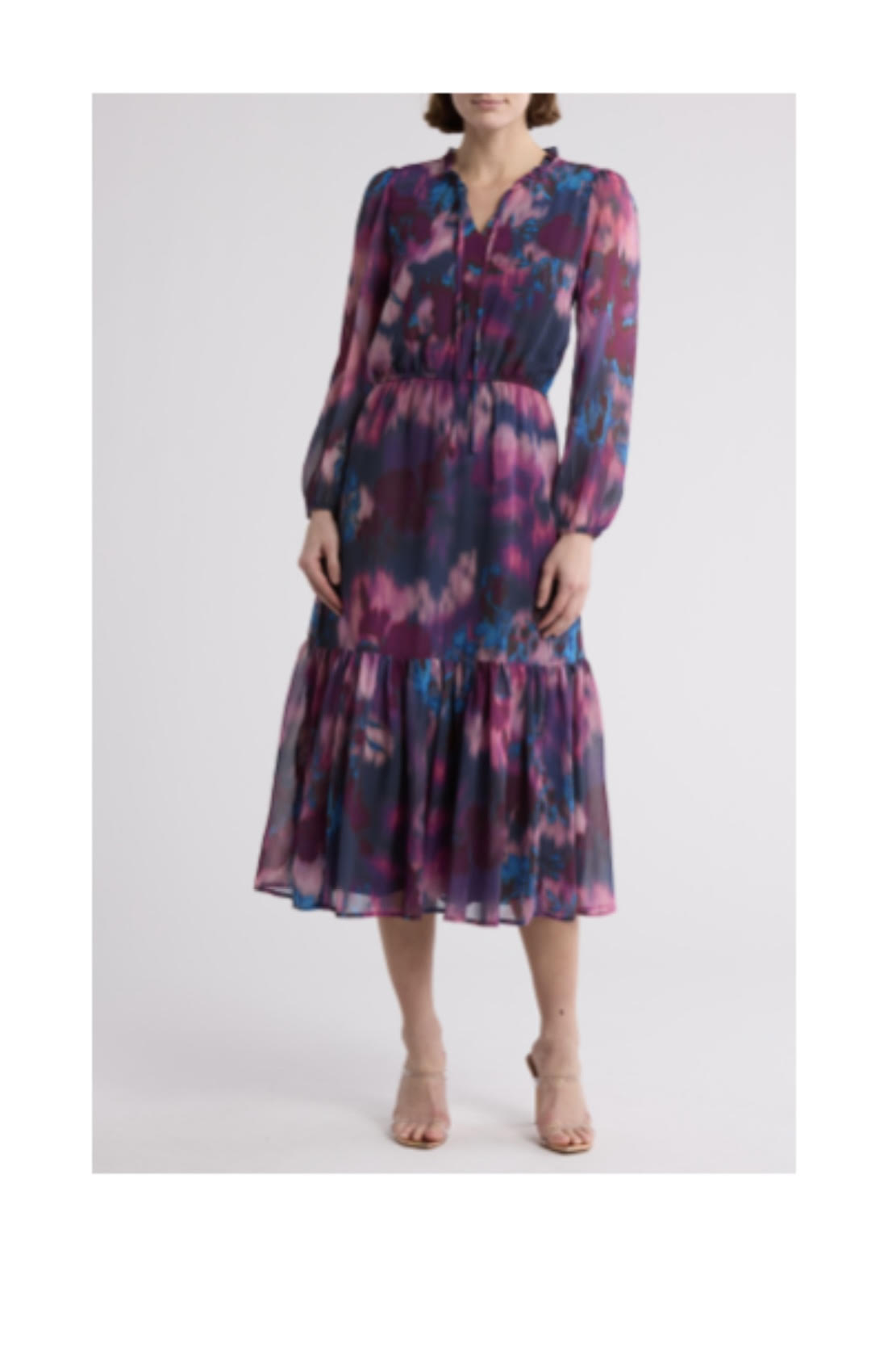 Steve Madden Long Sleeve Tiered Chiffon Midi dress