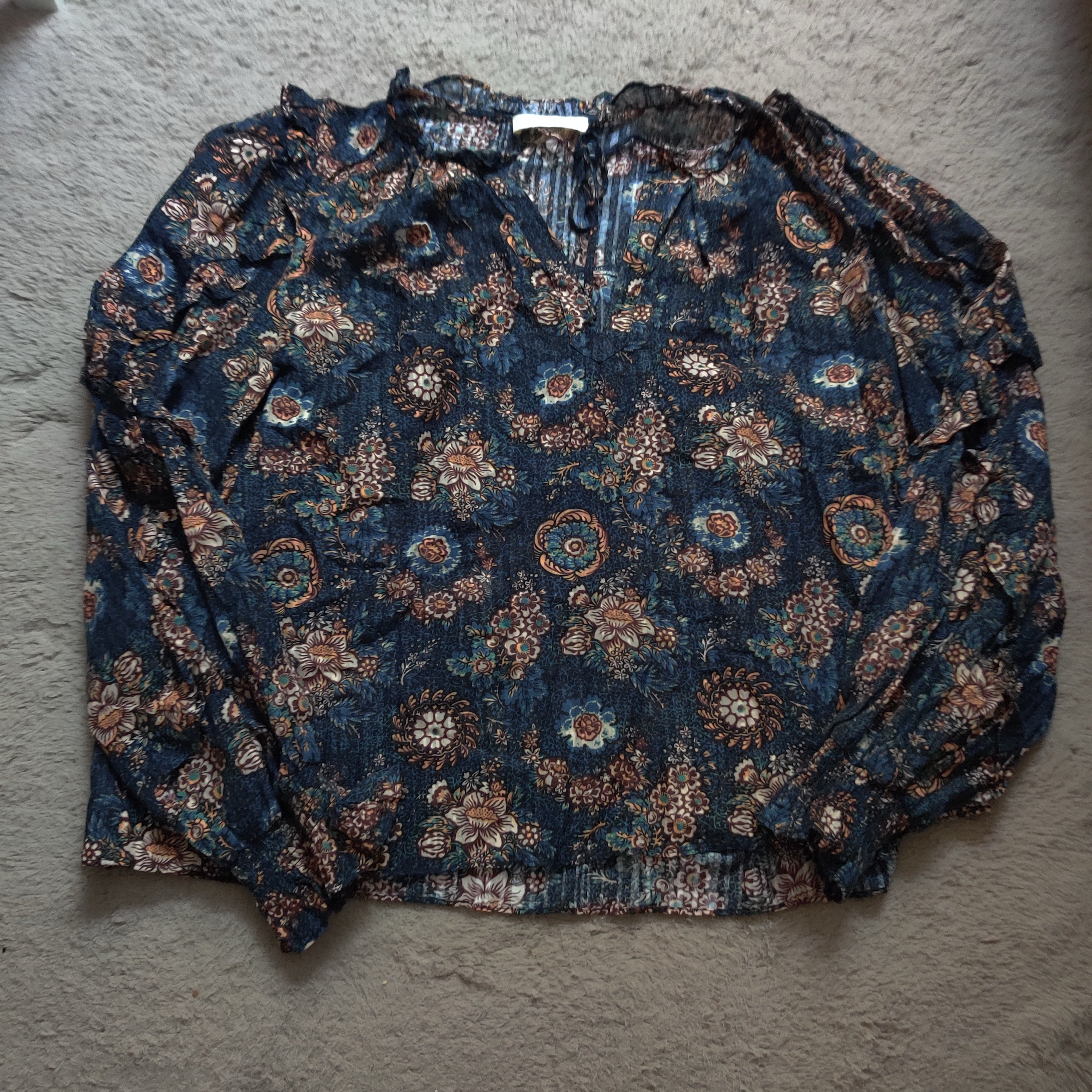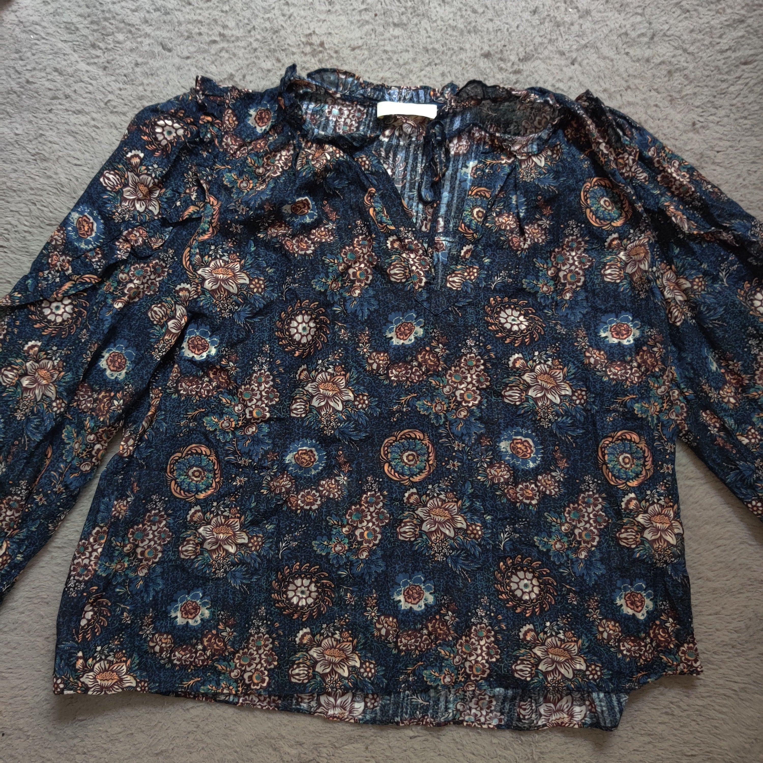 Ulla Johnson Manet Ruffled Floral Print Blouse Long Sleeve Sz 10 Voile Twilight